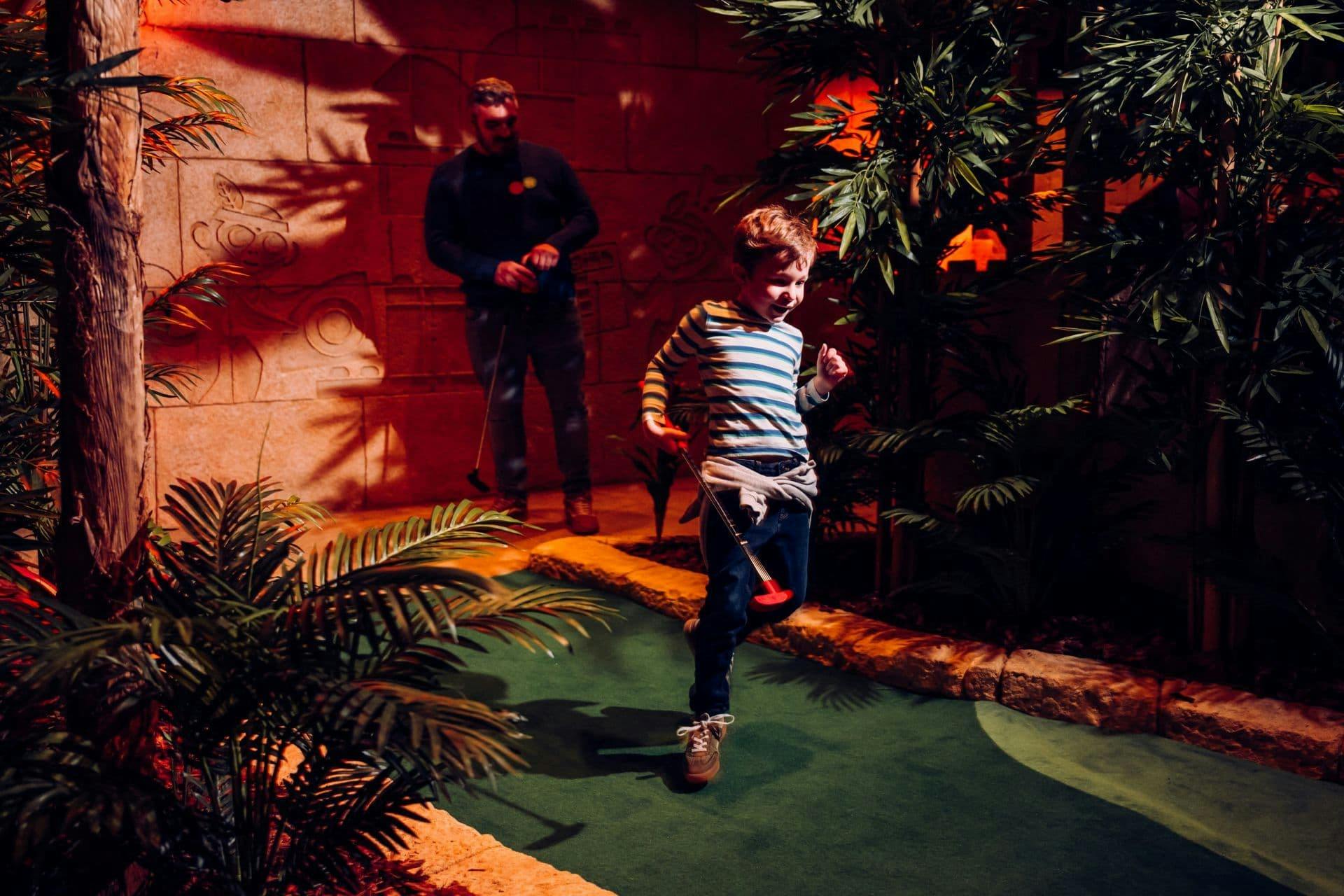 There are two 18-hole indoor golf courses that you’ll be able to choose from: